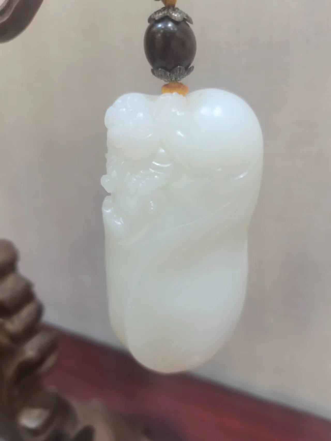 此件作品玉質(zhì)細(xì)膩瑩潤,色澤柔和素雅,油性十足,留有毛孔,是極具收藏、把玩、佩戴之精品。